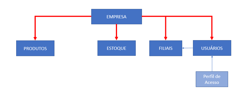 Cada USUÁRIO é vinculado a UMA ou MAIS FILIAIS e vai ter acesso às informações daquelas em que estiver cadastrado.