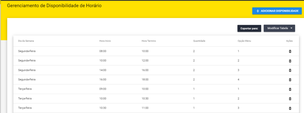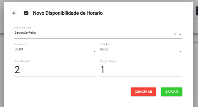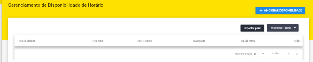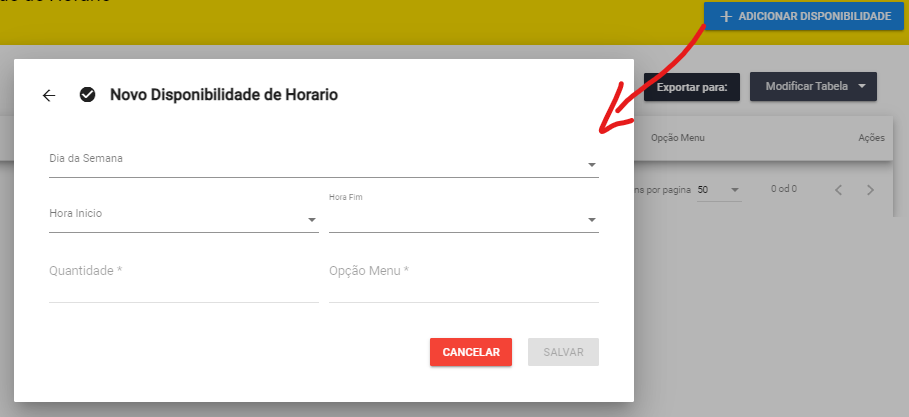 Para isso utilizamos o botão “+ Adicionar Disponibilidade” abrindo o modal abaixo :