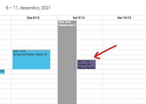 O Bloqueio de data aparece na agenda com uma cor cinza cobrindo todos os horários do dia :